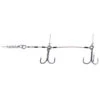 Mooie soepele AFW Surfstrand 1×7 leader voor het vissen met doodaas. De leader is 50 cm lang en opgebouwd uit 2 V point treble hooks en een neushaak. En is verkrijgbaar in 9, 13 en 18 kilo uitvoering. De neushaak is verschuifbaar op de lijn en kan aangepast worden naar de grote van de aasvis. Door de draad enkele malen rond de haak te draaien zet je deze vast hierdoor is de takel inzetbaar op iedere maat aasvis.