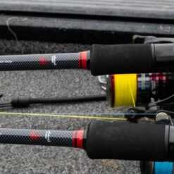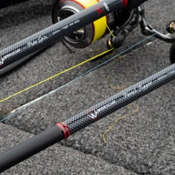 Zwaargewicht hengel ontworpen om met de kunstaassoorten te vissen die nodig zijn om de snoeken te verleiden.