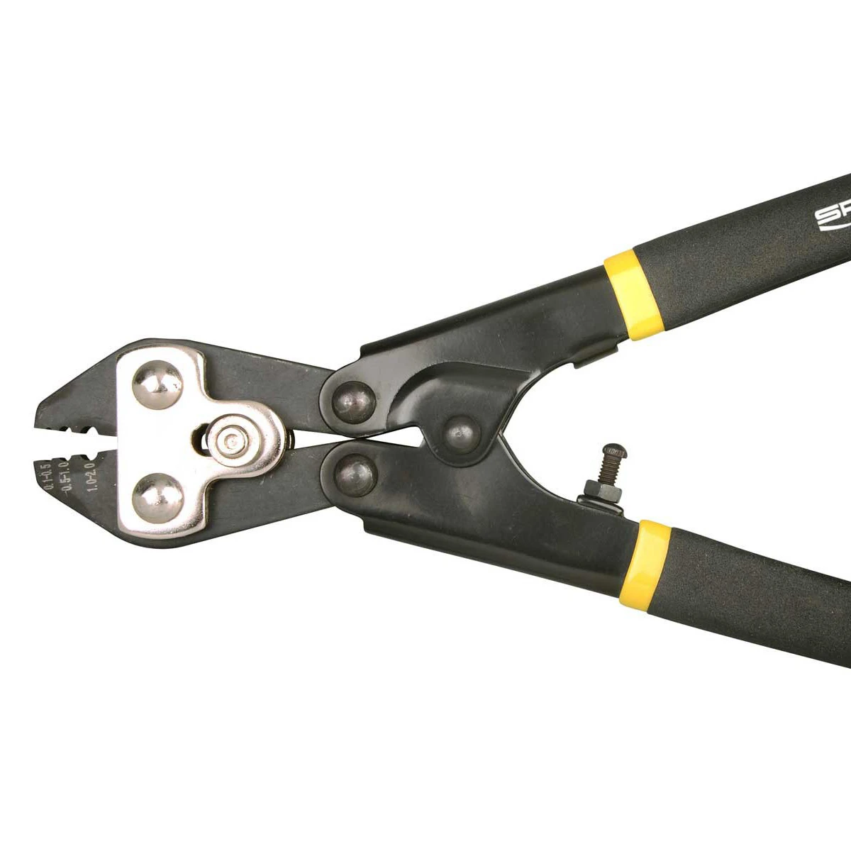De Spro Double Crimping Pliers is een dubbele krimp tang van 21 centimeter, gemaakt met een hoog mangaanstalen bek en high-carbon staal handvat voor het zeker en veilig zetten van krimps.