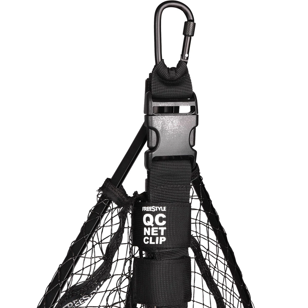 De QC Net Clip kan gebruikt worden om je schepnet aan je tas of riem te bevestigen. De robuuste UTX Flex Clip is makkelijk in gebruik door zijn grote formaat. Met afsluitbare hoogwaardige aluminium karabijnhaak. De dubbele netsteelriem is bekleed met neopreen met hoge wrijving om een sterke grip op het handvat te creëren.