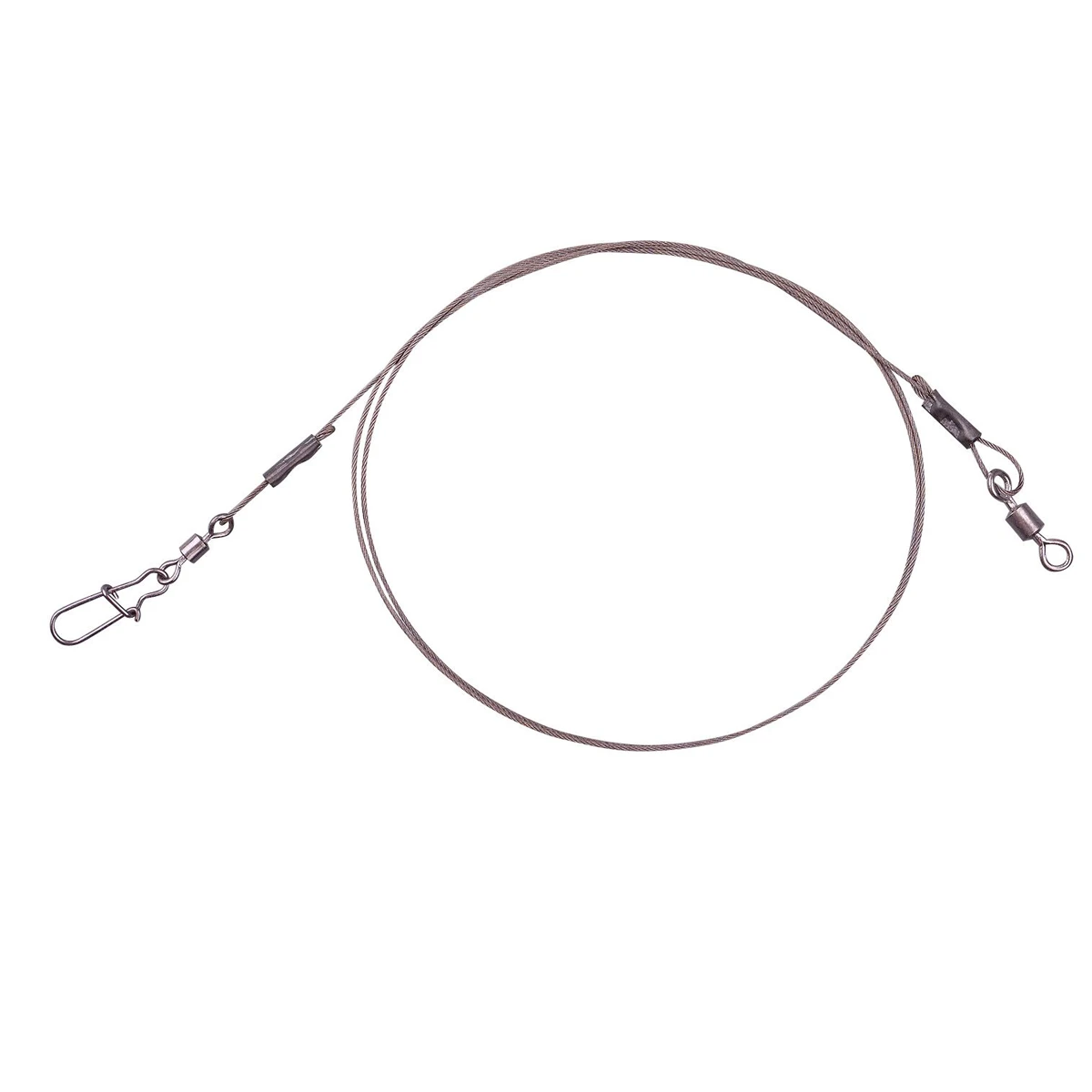 Ultra zachte RVS camouflage bruine 7×7 staaldraad zonder coating om extra flexibiliteit en soepelheid te waarborgen. Dit onderlijn materiaal is extreem schuurbestendig en kinkt niet. Ook hier is er natuurlijk gekozen voor een gecrimpte, triple-lock bevestiging van zowel de wartel als de snap.