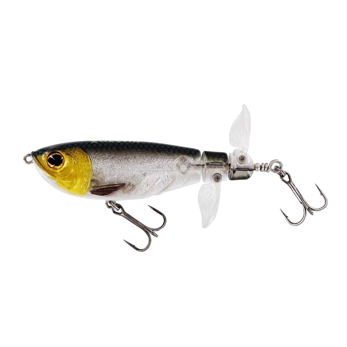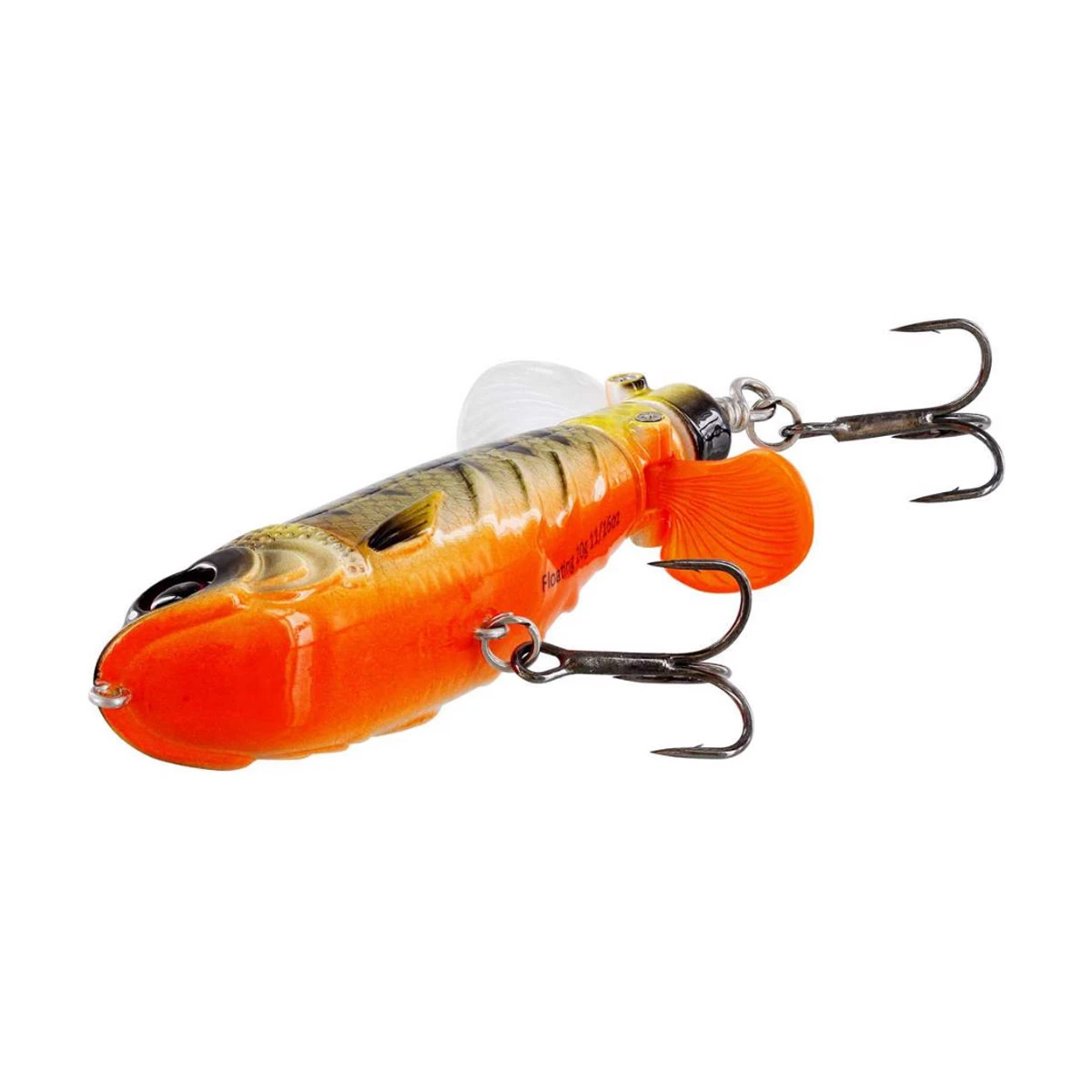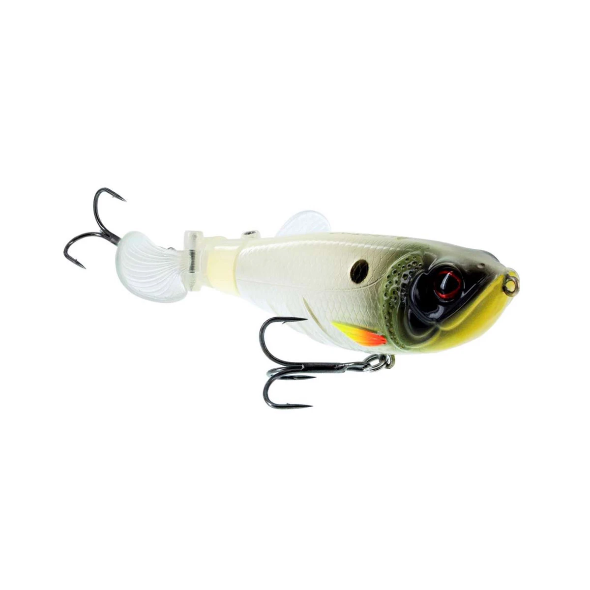 Dit krachtige topwateraas heeft een uniek gepatenteerd ontwerp dat het onweerstaanbaar maakt voor de vissen die aan het oppervlak jagen! Het brede profiel en het levensechte lichaam met vispatroon, gecombineerd met realistische ogen, maken dit een moeilijk doelwit voor baars, snoek, baars en zeebaars om te weerstaan. De brede kop creëert een kielzog op het oppervlak, terwijl de dubbele propellers onafhankelijk van elkaar bewegen, de ene met de klok mee en de andere tegen de klok in, om een ​​uniek visaantrekkend geluid te creëren. De Spot-On Twin Turbo is super eenvoudig te vissen, hij knalt met elke snelheid die je ophaalt. Doordat de dubbele propellerbladen in tegengestelde richting draaien, behoudt het kunstaas zijn stabiliteit, hoe snel of langzaam je het ook ophaalt. De supersterke halfzachte propellers vouwen plat tegen het lichaam tijdens het werpen, waardoor er minder weerstand ontstaat en langere en nauwkeurigere worpen mogelijk zijn.